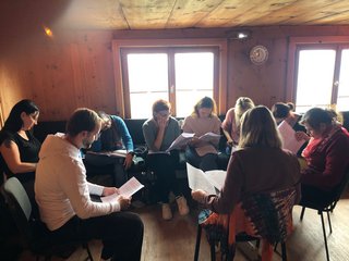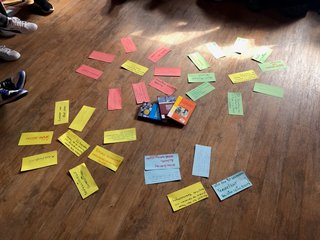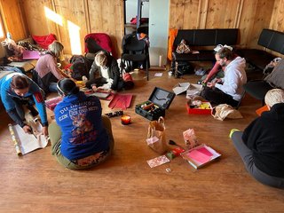Gemeinsam mit Kilian Moll begaben wir uns auf eine Reise durch Emotionen, Erinnerungen und Rituale. Bei Kaffee und Kuchen tauschten wir Gedanken zu früheren Trauerkulturen aus und fanden als Gruppe zusammen. Eine Meditation führte uns zu einem „sicheren Ort“, bunte Tücher halfen, Gefühle sichtbar zu machen.